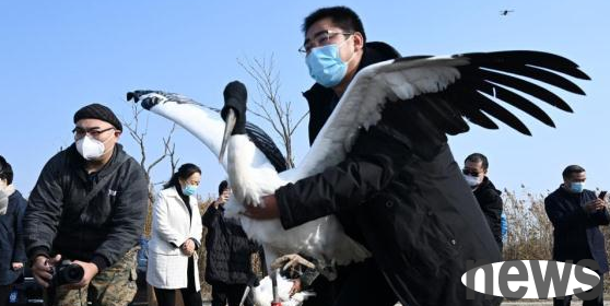 On November 23, staff prepared to release an Oriental white stork. Photo by Xinhua News Agency reporter Zhao Zishuo