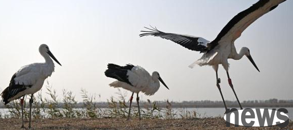 On November 23, three rescued Oriental white storks returned to nature in the Qilihai Wetland.