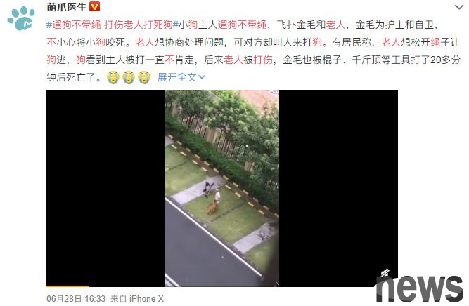 In a community in Foshan, Guangdong, an owner was walking his puppy without a leash and suddenly jumped on a golden retriever and an old man, which intensified the conflict.