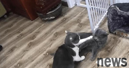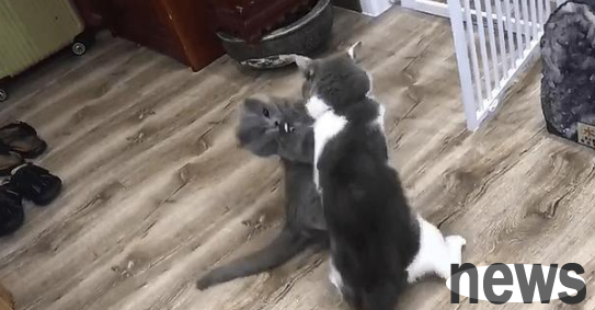 The two cats looked fierce just a moment ago, but they became affectionate the next second. It was really amazing. This is probably the legendary love-killing situation. The more fiercely the two cats fight, the deeper their love becomes. People watching this will feel angry and funny in their hearts.