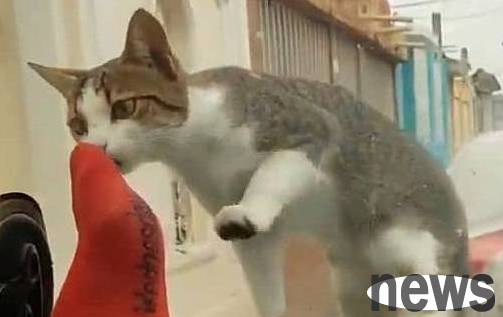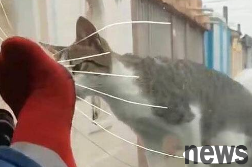 This driver wore a pair of particularly bright red socks. It may be that these very red-looking socks aroused the kitten's great interest. Even through the thick windshield, the cat's curiosity about the red socks could not be stopped. This special cat actually came forward and smelled the red socks with its nose. This scene is really funny and eye-catching.