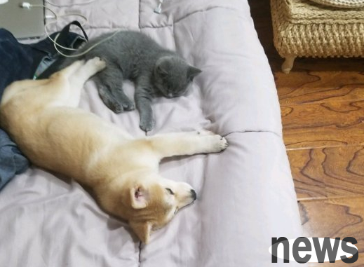 When the kitten saw that the Shiba Inu's attitude towards itself had changed greatly, it gradually stopped trying to suppress it and gradually became a "best friend". They often sleep together, and the kitten can just lean on the Shiba Inu and feel more comfortable.