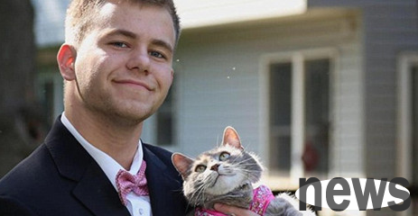 High school graduation ceremonies in the UK are held in the form of a dance, and boys need to invite a girl to attend as their dance partner. Sam Steingard from Washington did not invite a female companion to his graduation prom, but Sam did not give up on his graduation prom. He let his pet cat wear a pink dress and attended his graduation prom as his female companion.