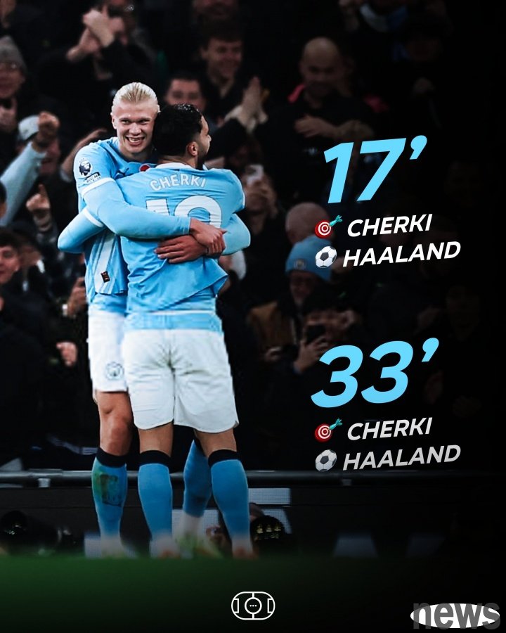 Manchester City vs. Bournemouth, Haaland quickly scored a double goal in this game, and the data agency WhoScored issued an article.