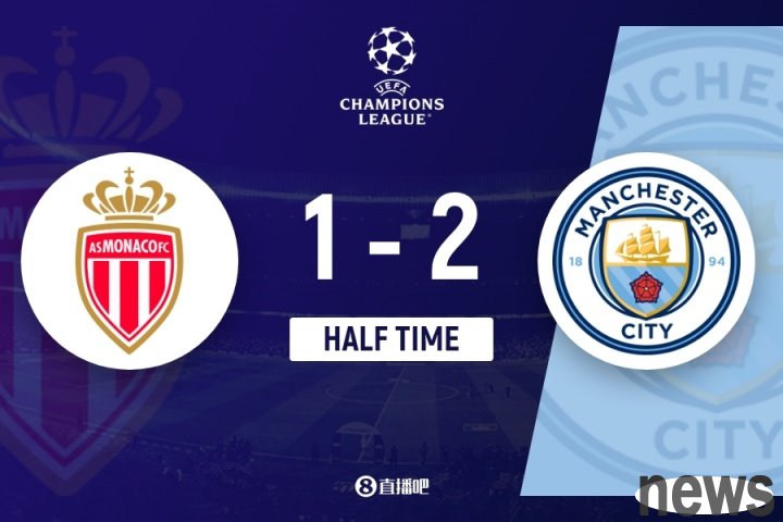 Injury in the first half, one minute of stoppage time, and halftime ended, Manchester City temporarily 2-1 Monaco.