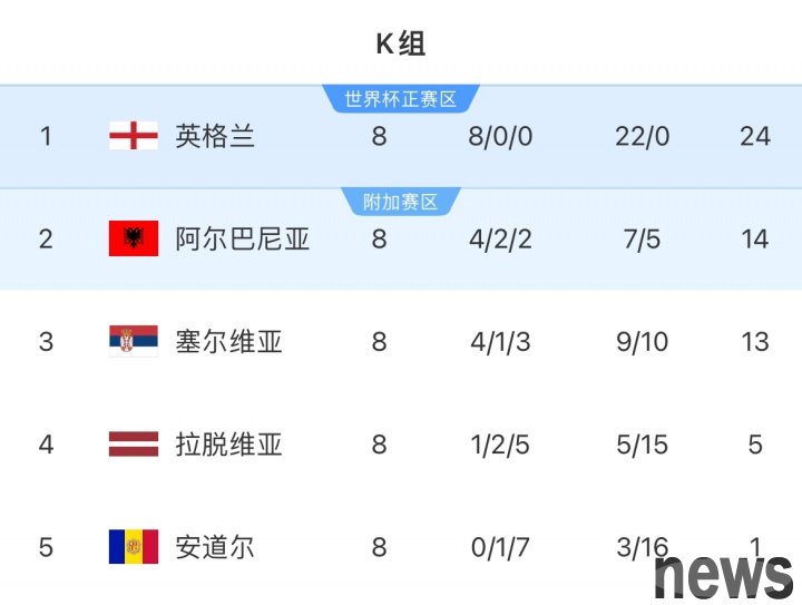 In the European group stage of the World Cup preliminaries, England finished all 8 rounds. They scored 22 goals and conceded no goals to secure first place in Group K, ending with a complete victory!