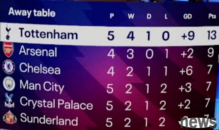 The BBC counted the points earned by each Premier League team in away games this season and listed the list. Tottenham scored the most with 13 points with 4 wins and 1 draw, while Arsenal ranked second with 9 points with 3 wins and 1 loss.