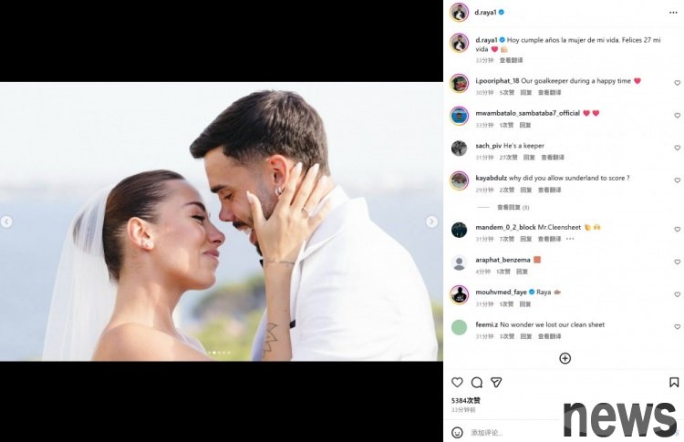 Arsenal goalkeeper Raya posted photos of his wedding with his wife on his personal social media and sent birthday wishes to his wife.